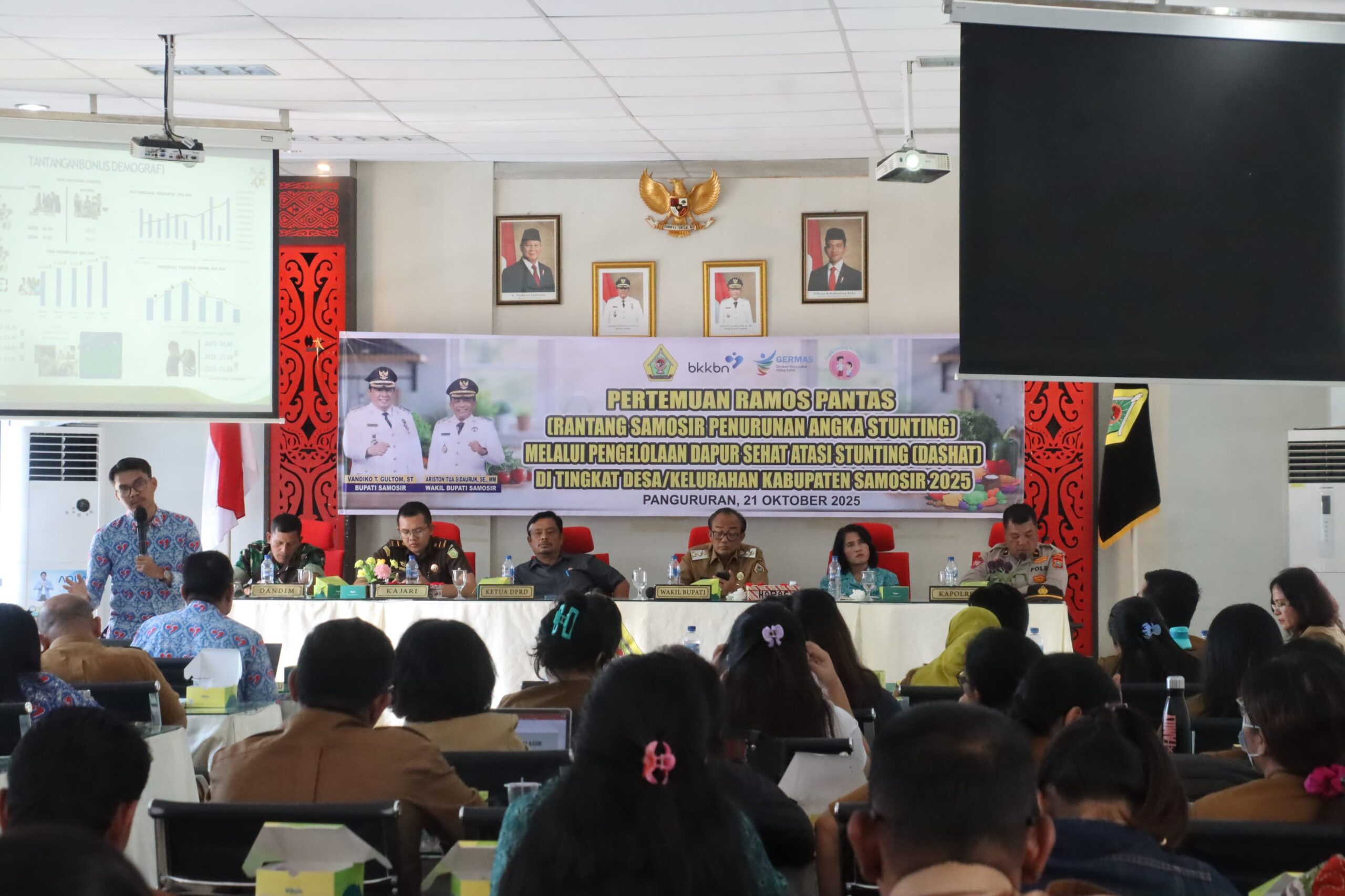 Pemerintah Kabupaten (Pemkab) Samosir memperkuat upaya penurunan angka stunting melalui program inovatif Ramos Pantas (Rantang Samosir Penurunan Angka Stunting) dengan pengelolaan Dapur Sehat Atasi Stunting (Dashat) di tingkat Desa dan Kelurahan tahun 2025.