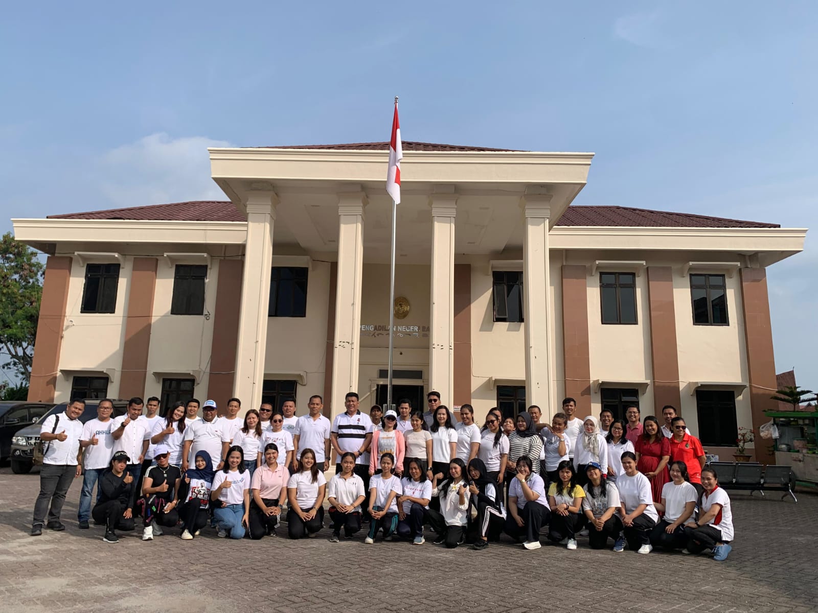 Pantauan media kegiatan senam sehat diikuti Perwakilan Pimpinan Cabang BRI, Balige Saniova Tarigan(SBM) bersama jajaran dan Ketua Pengadilan Negeri Balige, Makmur Pakpahan bersama jajaran pukul 8 pagi dihalaman PN Balige.